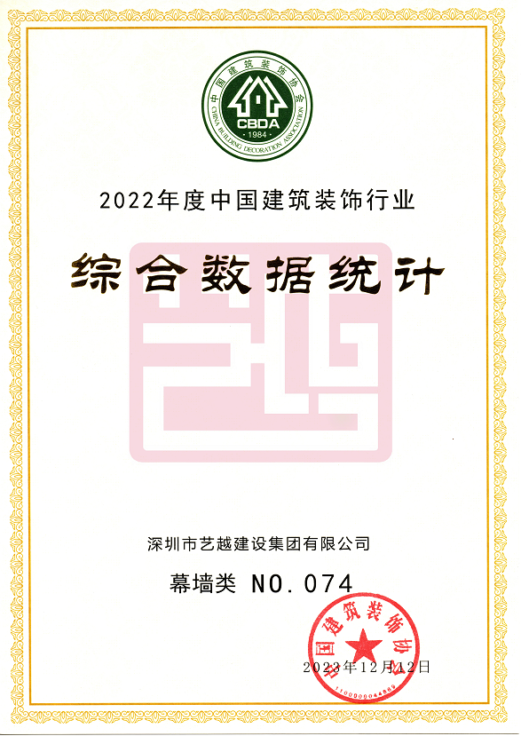 深圳市藝越建設集團有限公司,成立于2010年10月22日,注冊資金為6180萬元,是一家是集建筑、室內外裝飾設計與施工、智能化、市政于一體的綜合性、專業化的集團公司。具有建筑裝修裝飾工程專業承包壹級、建筑幕墻工程專業承包壹級、建筑機電安裝工程專業承包壹級、消防設施工程專業承包壹級、鋼結構工程專業承包壹級、中國展協展覽工程企業壹級、中國展協展覽陳列工程設計與施工壹級、潔凈工程資質壹級、防水防腐保溫工程專業承包壹級、特種工程(結構補強)不分等級、建筑裝飾工程設計專項甲級、建筑幕墻工程設計專項甲級、輕型鋼結構工程設計專項乙級、消防設施工程設計專項乙級、建筑工程施工總承包貳級、市政公用工程施工總承包貳級、電子與智能化工程專業承包貳級、城市及道路照明工程專業承包貳級、環保工程專業承包貳級、施工勞務不分等級、承裝(修、試)電力設施許可證五級、醫療器械經營許可資質貳、叁類、安全技術防范系統設計施工維修資格。質量管理體系(GB/T19001-2016 / ISO9001:2015)標準認證、職業健康安全管理體系(GB/T28001-2011)標準認證,環境管理體系(GB/T24001-2016/ISO14001:2015)標準認證。中國建筑裝飾協會常務理事單位、AAA資信單位、連續十二年被評為“守合同重信用企業”。